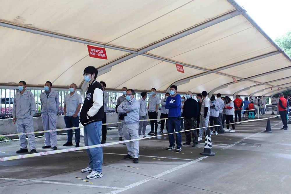 為方便檢測(cè)的同時(shí)盡最大努力減低員工被感染的風(fēng)險(xiǎn),公司共設(shè)置兩處監(jiān)測(cè)點(diǎn),要求各事業(yè)部人員分時(shí)段檢測(cè),參檢人員按照事業(yè)部劃分批次,有序排隊(duì)進(jìn)行,大家自覺佩戴口罩,保持一米距離,積極配合醫(yī)護(hù)人員完成采樣。