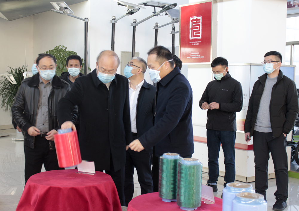 在集團(tuán)董事長(zhǎng)姚湘江等公司高層的陪同下,尹學(xué)群市長(zhǎng)、張群環(huán)市長(zhǎng)一行先后參觀了集團(tuán)展廳和千禧龍纖的生產(chǎn)車間。參觀集團(tuán)展廳時(shí),尹學(xué)群市長(zhǎng)、張群環(huán)市長(zhǎng)一行詳細(xì)了解了集團(tuán)旗下各子公司的產(chǎn)品線,并針對(duì)各個(gè)系列產(chǎn)品的應(yīng)用領(lǐng)域、延伸產(chǎn)品等方面,與隨行領(lǐng)導(dǎo)展開討論與交流。參觀生產(chǎn)車間時(shí),則詳細(xì)的詢問(wèn)了復(fù)工后的生產(chǎn)情況及現(xiàn)場(chǎng)防疫管控工作的執(zhí)行情況。在與尹學(xué)群市長(zhǎng)、張群環(huán)市長(zhǎng)一行交流的過(guò)程中,姚湘江董事長(zhǎng)對(duì)復(fù)工復(fù)產(chǎn)后的生產(chǎn)情況逐一進(jìn)行了匯報(bào),并詳細(xì)說(shuō)明了集團(tuán)推行的各項(xiàng)防疫措施。