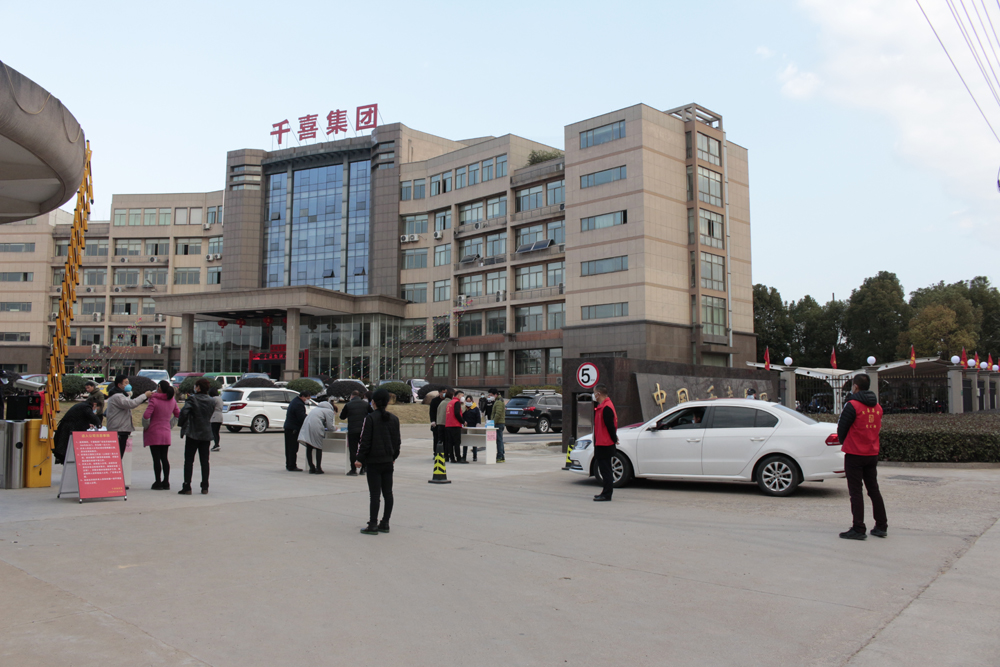 復(fù)工后,千喜集團便結(jié)合實際情況,為切實做好疫情防護工作,采取了諸多防控措施,從成立應(yīng)急防控工作小組,嚴(yán)控出入口、制作防疫注意事項、測量體溫到消毒作業(yè)等,滲透到了職工在廠區(qū)工作、生活的方方面面。為了嚴(yán)格的監(jiān)控人口流動的軌跡,自開展疫情防控工作后,便關(guān)閉了其他的出入口,只開放了正門作為唯一的出入口,所有人員都只能從此處進入廠區(qū),且須測量體溫正常后,方可進入。這是所有職工進入廠區(qū)的第一道門,也是防控工作中必須守好的一道門。