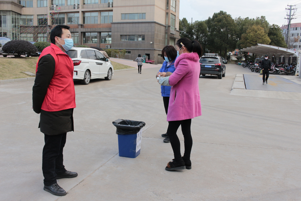 每天早上7點30分開始,在集團正門入口處,便能看到各事業(yè)部負(fù)責(zé)測量體溫的人員早已等候在此,除此之外,集團黨支部還成立了特別行動小組,積極參與到各項防控工作中,并且每天會委派兩名黨員負(fù)責(zé)職工體溫監(jiān)測的工作。職工們來上班后,會第一時間為他們測量體溫,并進行登記,待完成測量并無異常后,會給每名職工派發(fā)一只新的口罩,與已使用過的口罩進行替換,在下午上班前所有職工還需再測量一次體溫?,F(xiàn)場還有專人為大家科普正確摘取口罩的方式:把套耳朵的帶子脫下來,反向折疊口罩,用帶子將口罩捆綁好后,扔入收集桶即可。另外,為了避免因隨意遺棄造成交叉感染,還在正門入口處設(shè)置了廢棄口罩收集桶,集中收集與處理廢棄口罩,堅持日產(chǎn)日清,并及時對收集桶進行消毒。確??谡纸y(tǒng)一發(fā)放與回收,以及正確處理廢棄口罩是防控工作中又一道必須守好的門。