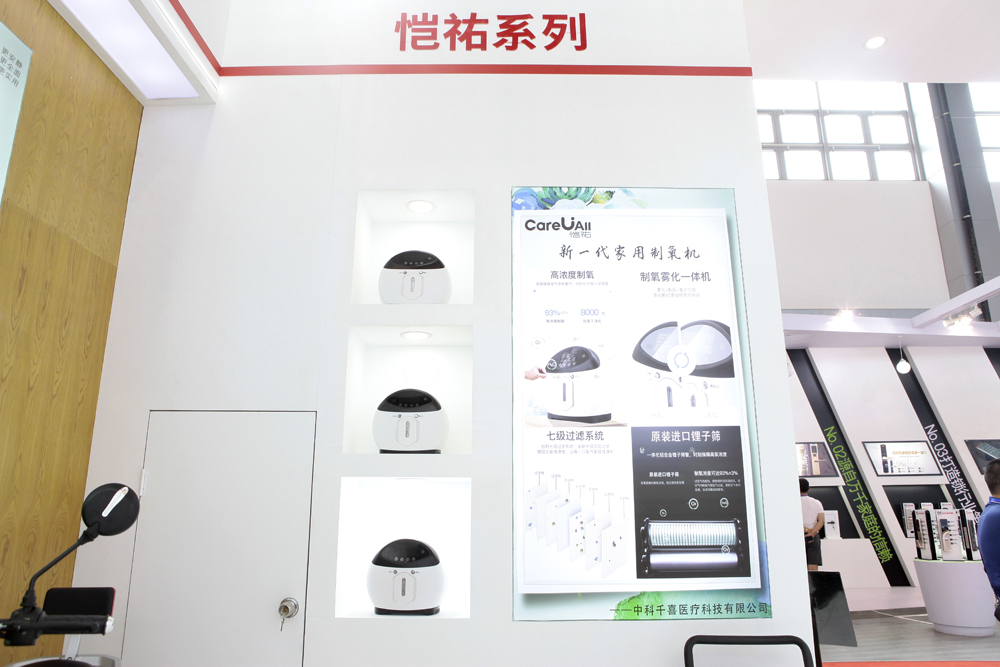 再次,今年展出的產(chǎn)品系列,除了有千禧龍纖系列、龍盔新材料系列、小飛哥電動(dòng)車(chē)系列、千喜新能源系列、戈勒清洗機(jī)系列外,還增加了愷祐系列產(chǎn)品,即制氧機(jī)系列產(chǎn)品。制氧機(jī)的工作原理是利用分子篩物理吸附和解吸技術(shù),制氧機(jī)內(nèi)裝填分子篩,在加壓時(shí)吸附空氣中的氮?dú)?,剩余的未被吸收的氧氣被收集起?lái),經(jīng)過(guò)凈化處理后即成為高純度的氧氣,整個(gè)過(guò)程為周期性地動(dòng)態(tài)循環(huán)過(guò)程。家用型制氧機(jī)的特點(diǎn)則是使用方便、移動(dòng)輕巧,既適合家用,也能利用汽車(chē)電源放在車(chē)上使用。愷祐制氧機(jī)系列產(chǎn)品產(chǎn)自于中科千喜醫(yī)療有限公司,專(zhuān)注于生產(chǎn)、銷(xiāo)售制氧機(jī),是千喜集團(tuán)在康復(fù)養(yǎng)老領(lǐng)域的延伸和拓展。